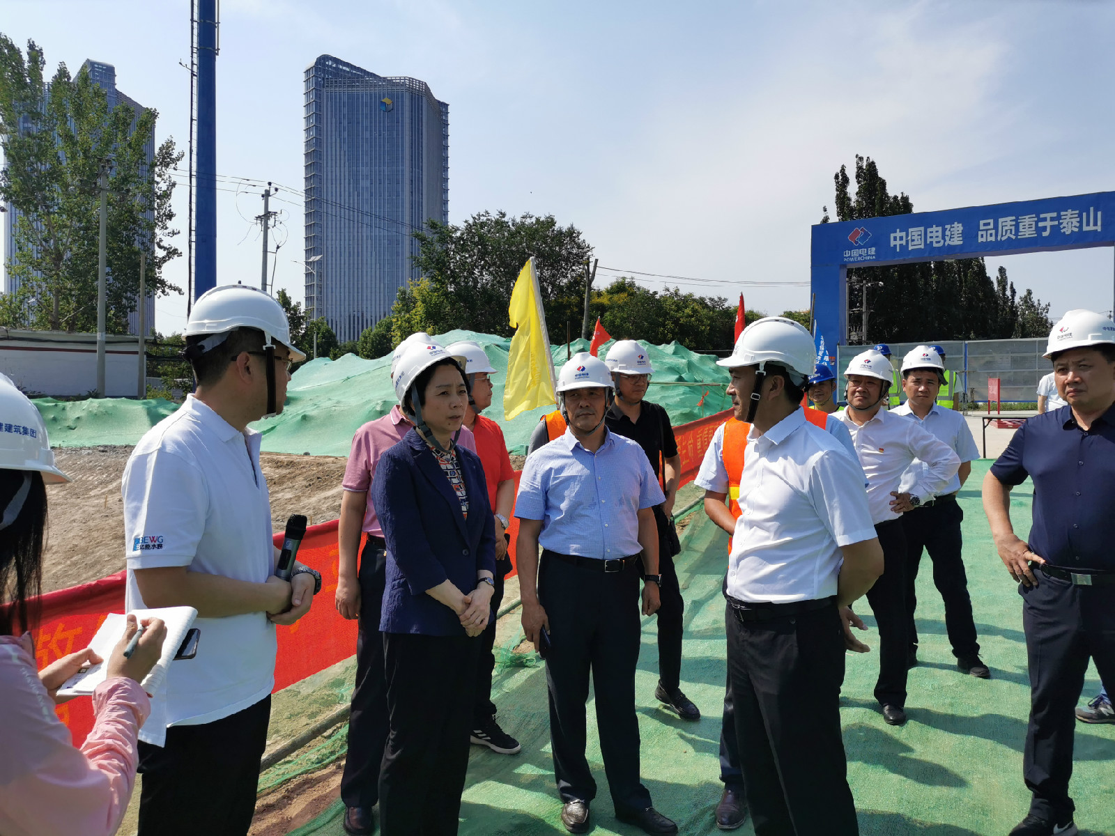 閆繼紅到達黃花溝示范段現場后,首先按入場要求參加了安全告知活動,隨后聽取了趙連峰對項目整體情況、現場施工及工作計劃的匯報,并就項目水利工程、生態景觀和智慧水環境等方面進行了深入的交流。她要求相關委辦局對影響項目推進的場地移交、拆遷等問題給以關注和支持。