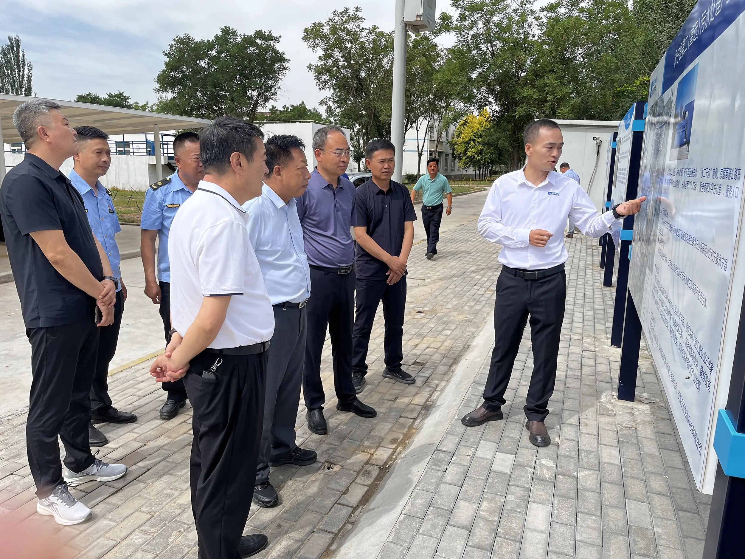 調研組先后參觀了出水口、出水在線監測站房,聽取了關于永寧二污項目建設運營情況的介紹,詳細詢問了水量水質、設備運行、污水收集管網等情況,對永寧二污項目穩定生產,運行管理水平給予肯定。平學智指出,永寧二污要不斷優化完善運行管理水平,切實提高污水收集處理能力和處理效果,做到污水應收盡收,應處盡處,確保污水處理廠高質高效運行。