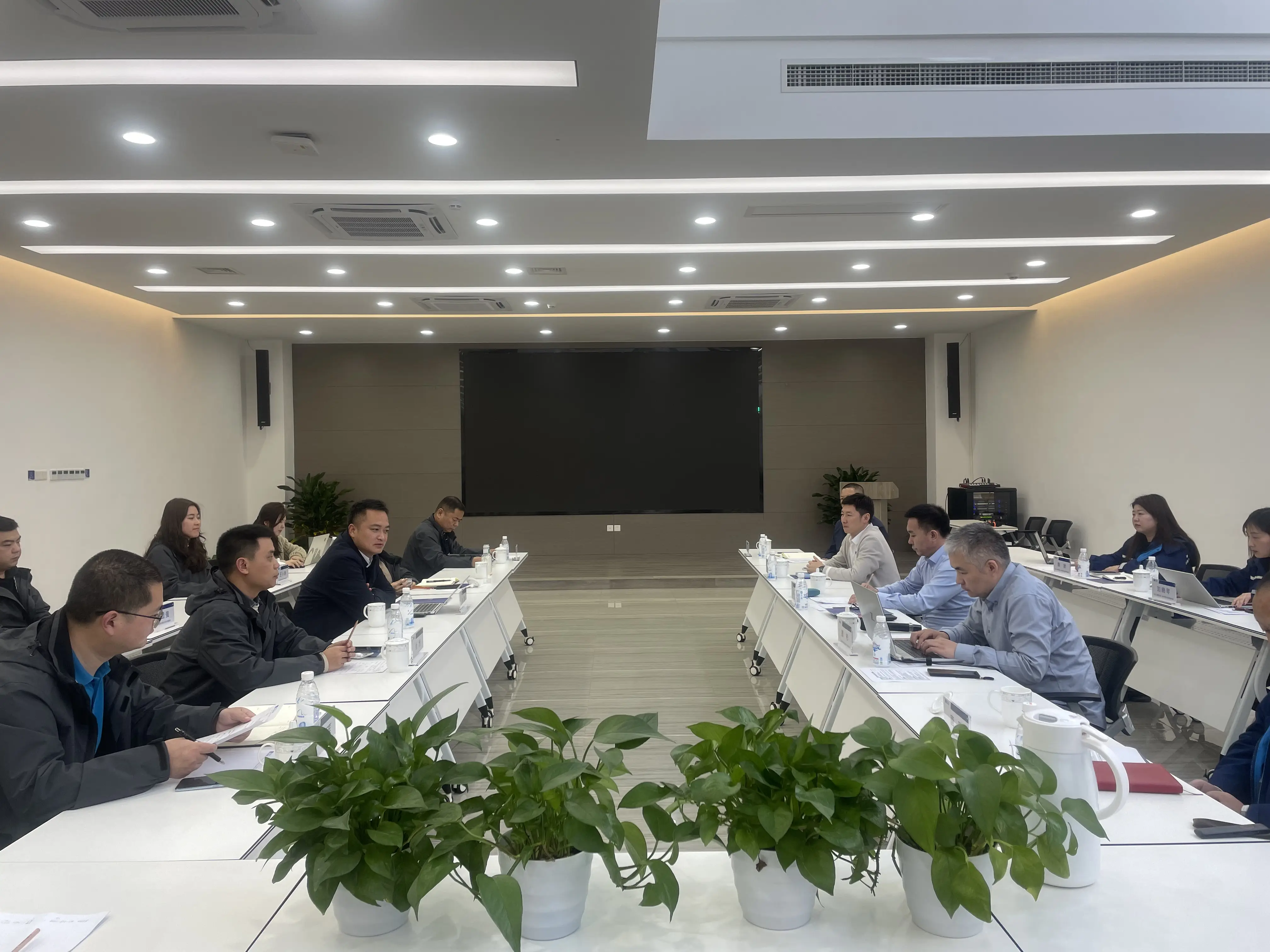 調(diào)研組一行聽取了北控水務(wù)集團(tuán)基本情況、產(chǎn)業(yè)布局以及在太原市再生水利用開發(fā)方面取得成果的介紹,現(xiàn)場查看了超濾、反滲透管道儀表、膜組設(shè)備、水源熱泵等運行情況,了解示范基地的工藝流程、水質(zhì)標(biāo)準(zhǔn)、處理規(guī)模及水源熱泵工作原理等。