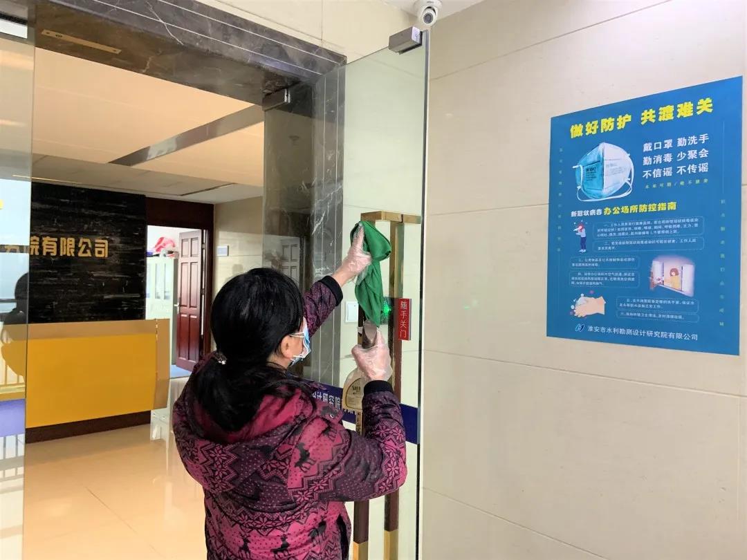 為了達(dá)到復(fù)工標(biāo)準(zhǔn),淮安水利院在籌備過程中,力求把工作做細(xì)、做實、做周全。提前開展全員排查工作,掌握每名職工近2周的出行情況,并做好市外返淮職工居家隔離觀察。嚴(yán)格執(zhí)行“日報告”制度,并對辦公場所進(jìn)行全面消殺,確保復(fù)工后衛(wèi)生清潔狀況達(dá)到疫情防控要求。同時做好防疫物資的采購存儲,切實保障復(fù)工后員工的健康安全和生產(chǎn)經(jīng)營工作的正常開展。