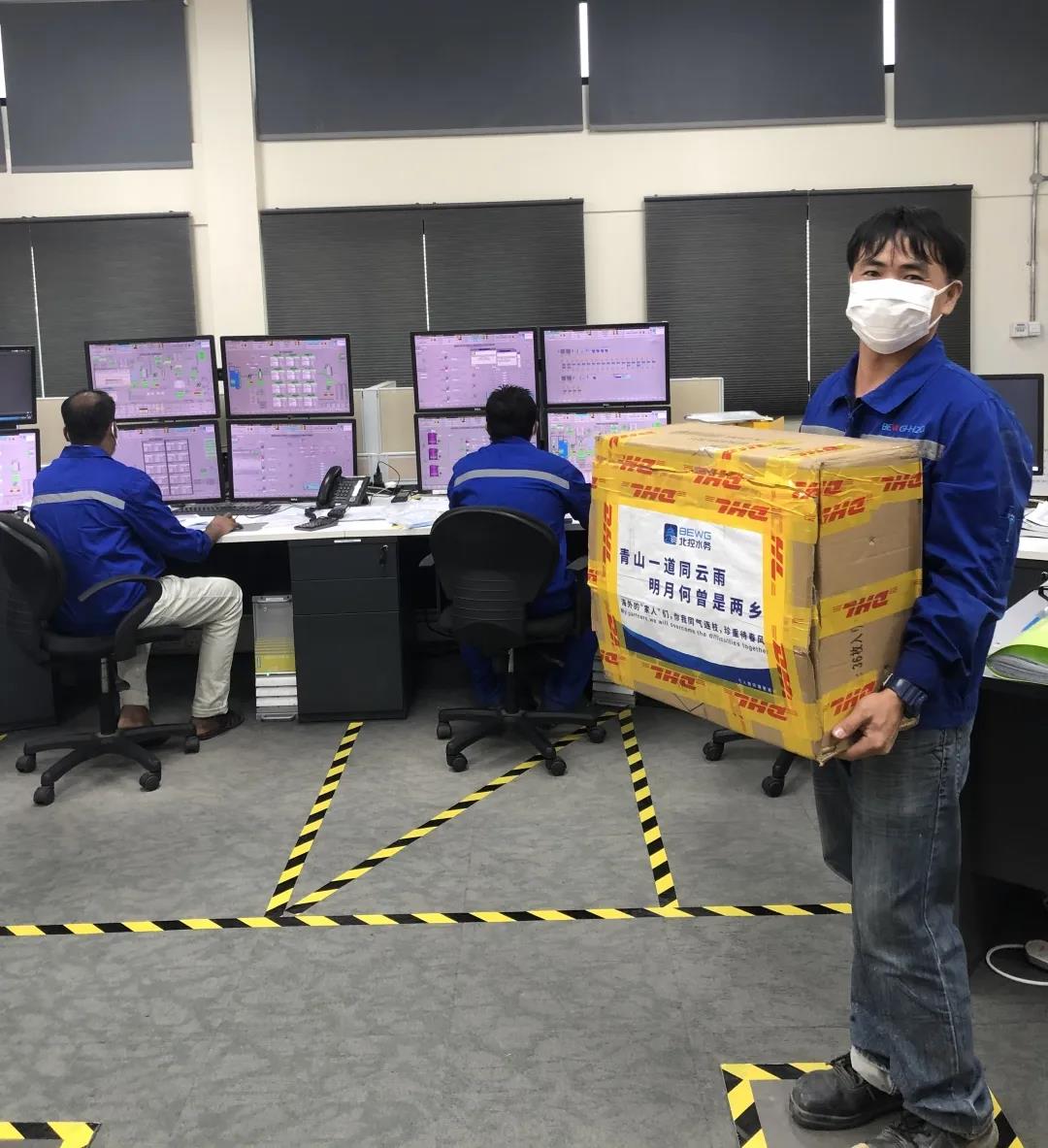 4月2日,新加坡樟宜Ⅱ新生水廠員工收到北控水務北京總部寄出的防疫物資。