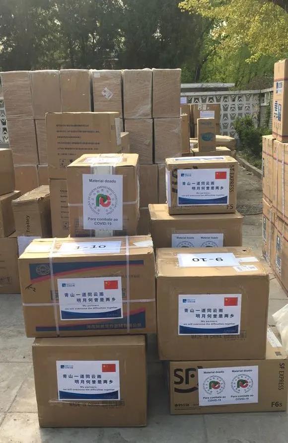 5月7日,由北京寄往北控水務葡萄牙平臺公司的防疫物資正在葡萄牙駐華使館,等待專機“飛”往葡萄牙。其中一部分物資將捐給當地中葡青年企業家聯合會。
