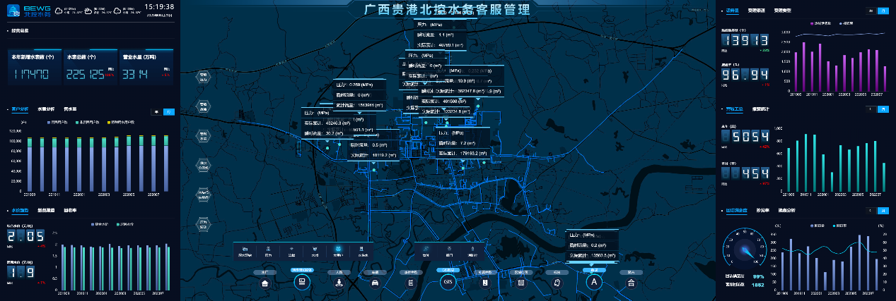 在供水方面,貴港智慧水務(wù)建設(shè)為北控水務(wù)供水管理標準化及管理模式創(chuàng)新提供了示范樣板。基于智慧水務(wù)的實施,貴港項目公司完成了15個系統(tǒng)的上線運行、6個業(yè)務(wù)系統(tǒng)的深度應(yīng)用,實現(xiàn)了管理精細化、決策科學(xué)化、服務(wù)優(yōu)質(zhì)化。