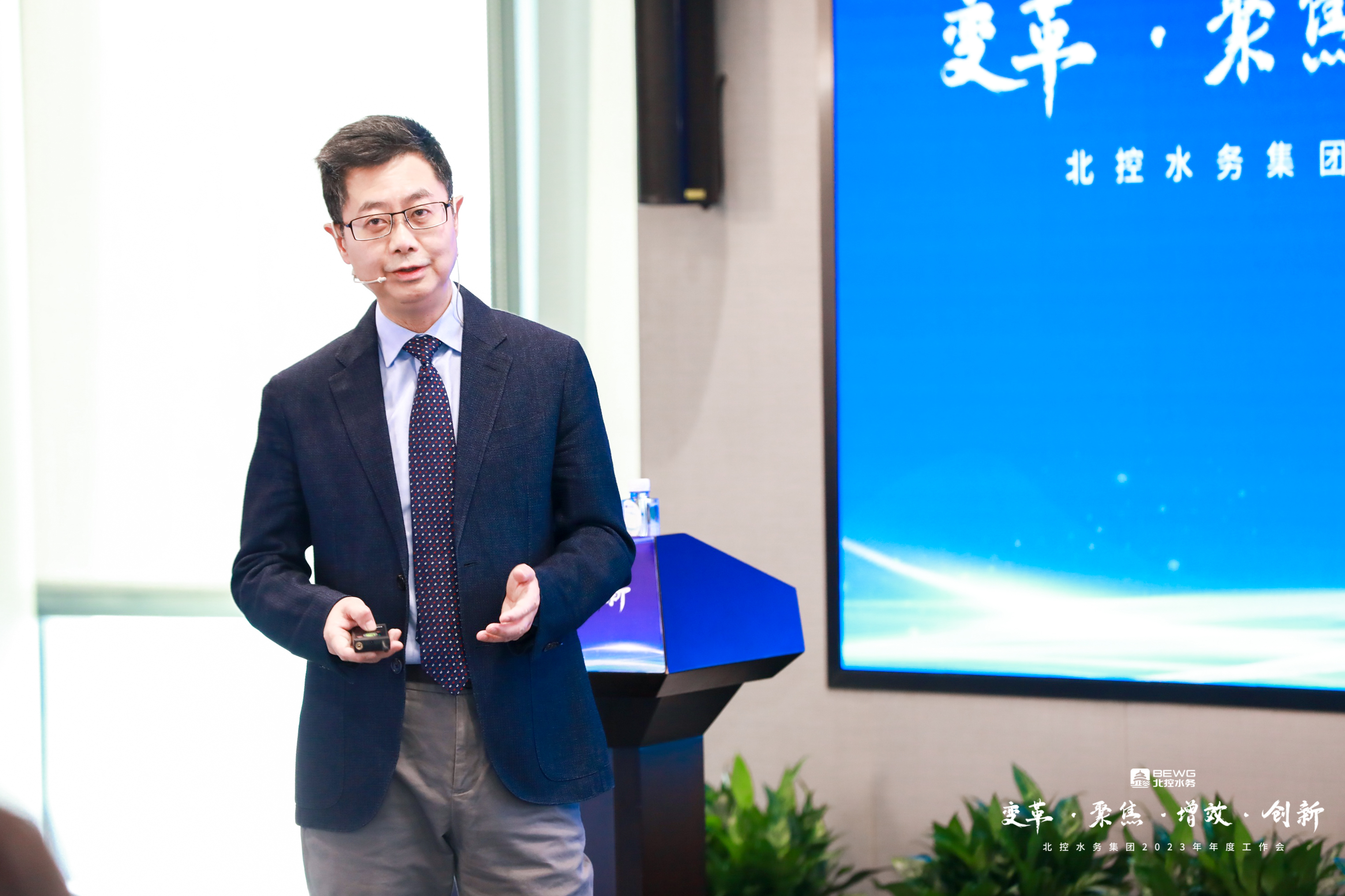北控水務集團總裁周敏緊扣集團戰略共識和戰略目標,圍繞“1+4+4”業務組合,轉變從行商到坐商的經營理念,明確戰略落地舉措。他系統闡述集團九大核心能力及內涵,提出組織結構變革方案的總體思路,要求集團上下各層級通力合作,聚焦業務、聚焦核心能力、聚焦一線,夯實組織能力,提升組織效率。他強調,我們要以更大的信心和決心推進改革創新,把握歷史機遇、贏得戰略主動,為北控水務的新時代轉型發展注入強大活力和動力。