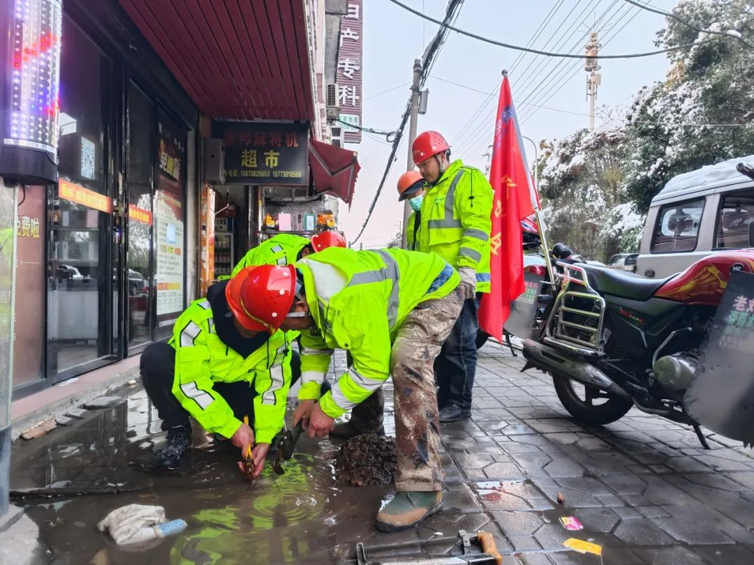 在湖南新化,接到搶險需求后,項目公司立即開展供水應急搶修調度工作,組織搶修小組迅速反應,黨員先鋒隊沖鋒在前,迎著冰刀霜劍,共同抗擊寒潮風險,為市民提供生活用水保障。
