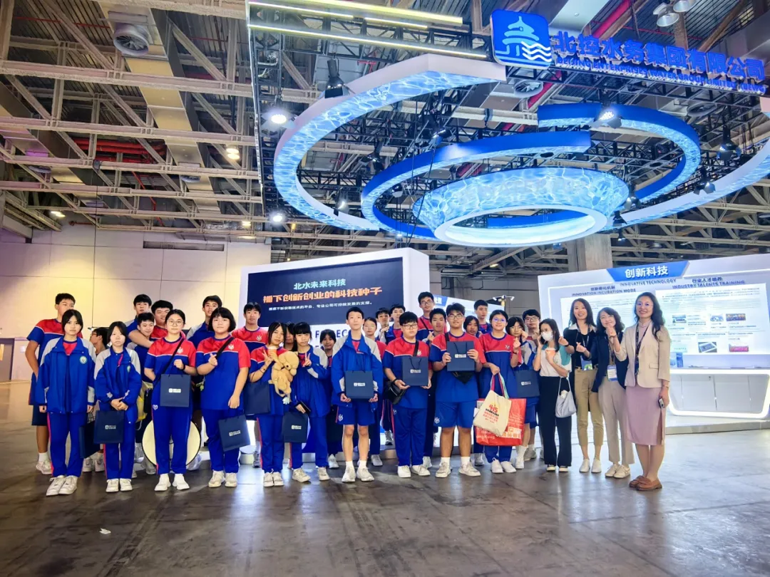 在展會的公眾開放日,澳門多所學校的中小學生來到北控水務集團展位參觀,學習水污染治理與水生態保護方面的知識,了解北控水務集團在水務與環保領域的全球化布局和引領性貢獻。講解員重點介紹了集團多年產教融合的實踐經驗,以及實現教育鏈、產業鏈、供應鏈、人才鏈與價值鏈有機銜接的重要舉措。
