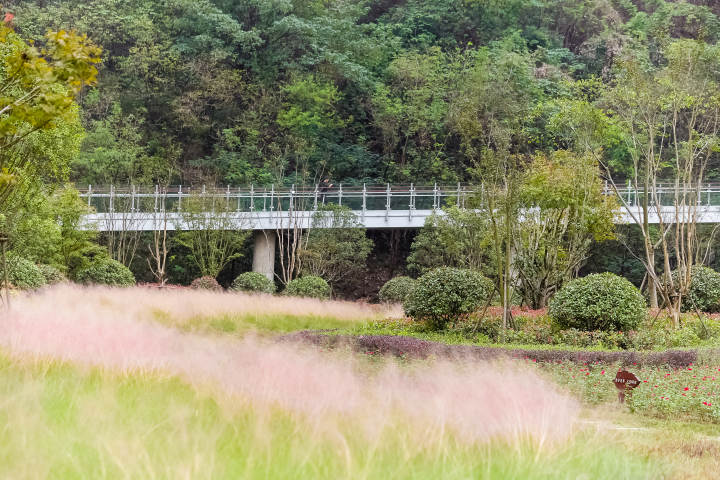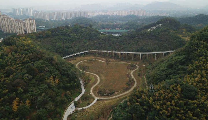 一座長數(shù)百米的架空棧橋,作為連接?xùn)|、西兩塊山體的紐帶,在不破壞山體自然資源的基礎(chǔ)上,既滿足了山體間高差上的銜接,又滿足了全程無臺階的游覽體驗。
